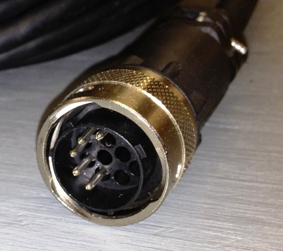 TIG Welding Foot Control Pedal for Airco Heliwelder 251 AC/DC. Has 12-pin Souriau plug (p/n UTG614 12PN) with 25,000-ohm potentiometer. Uses pins D, E, F, G, and H. See picture of 12-pin plug here - it must match.